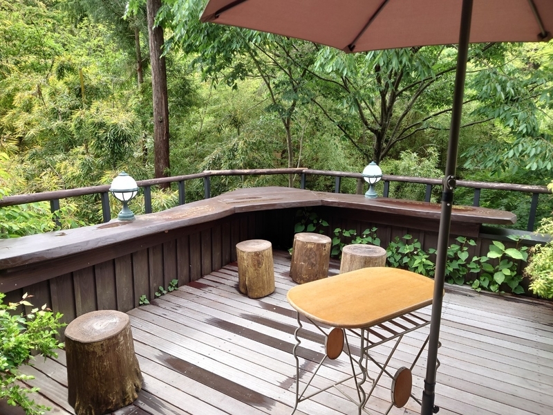 花仙庵 仙仁温泉 岩の湯(2回目)④ 遊歩道・ティールーム 櫓→こちら